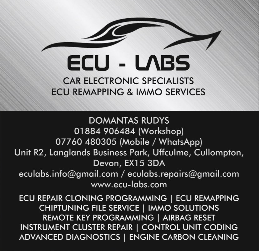 ECU-Labs Unit R2, Langlands Business Park Uffculme, Cullompton Devon, EX15 3DA 01884 906484 (Workshop) 07760 480305 (Mobile/WhatsApp)